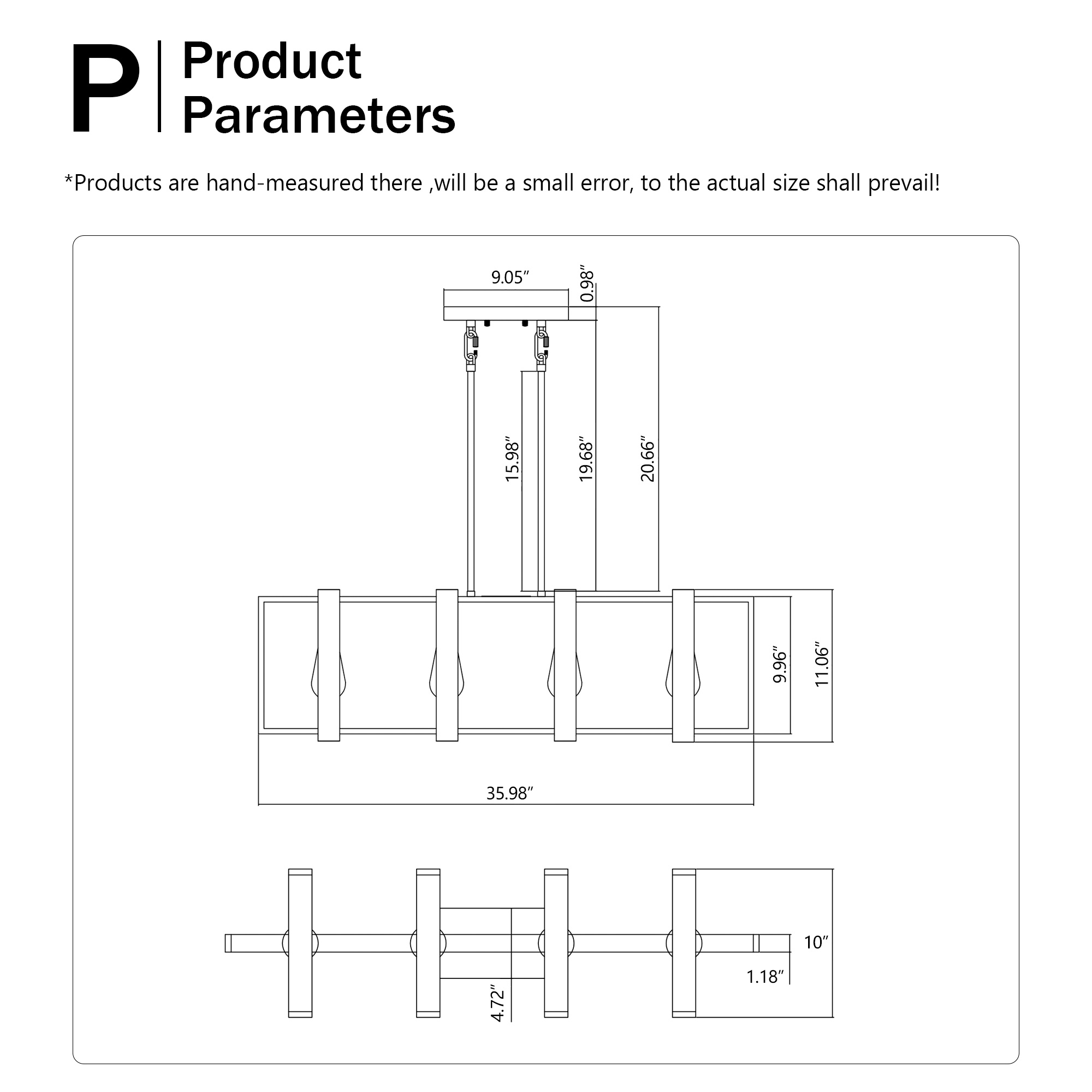 4-Light Fixture, Rustic Wood And Black Metal Rectangular Chandelier, Hanging Lighting | I-TemDeals